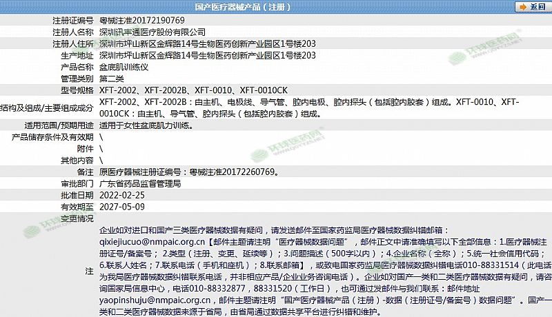 生產(chǎn)企業(yè): 深圳訊豐通醫(yī)療股份有限公司