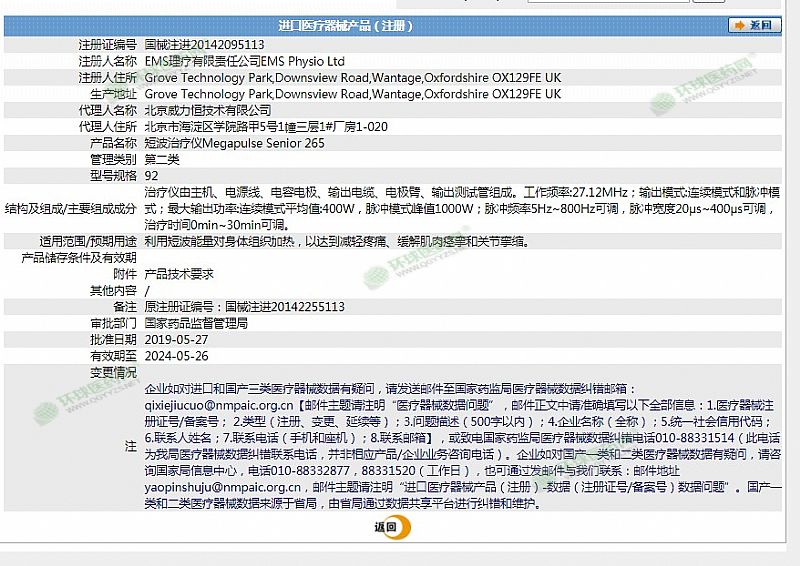 生產(chǎn)企業(yè): EMS理療有限責(zé)任公司EMS Physio Ltd