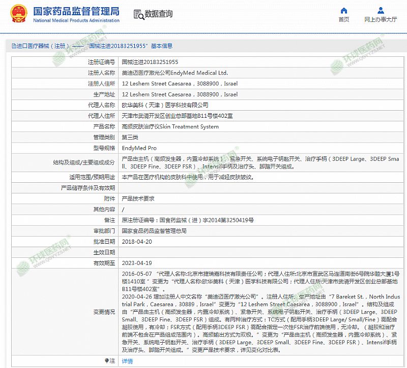 | 產(chǎn)品用途 | 本產(chǎn)品在醫(yī)療機(jī)構(gòu)的皮膚科中使用,用于減輕皮膚皺紋。 有效期至 2023-04-19 |