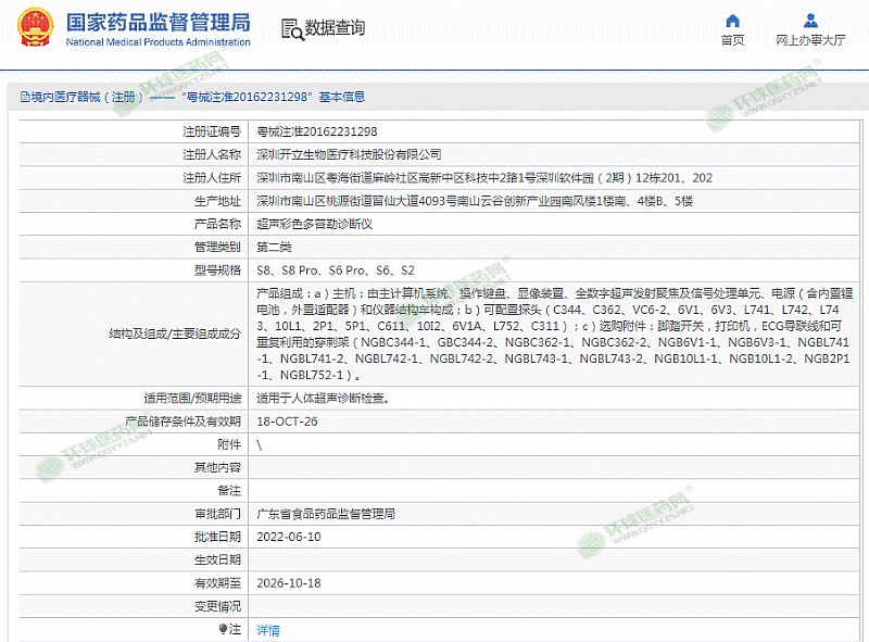 生產(chǎn)企業(yè): 深圳開(kāi)立生物醫(yī)療科技股份有限公司