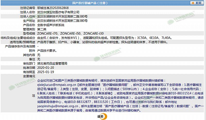 生產(chǎn)企業(yè): 武漢中旗生物醫(yī)療電子有限公司