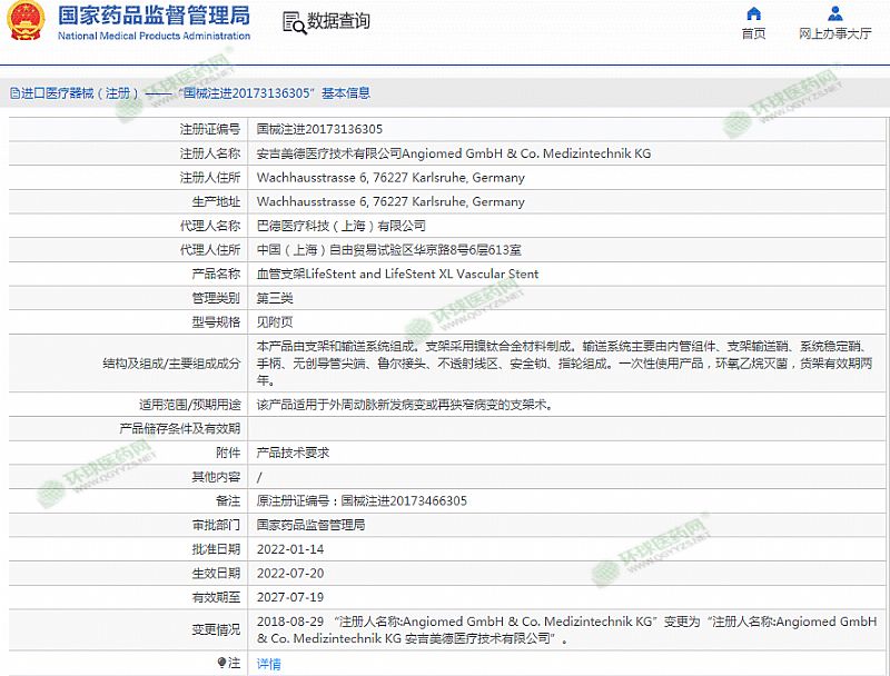 生產(chǎn)企業(yè): 安吉美德醫(yī)療技術(shù)有限公司Angiomed GmbH & Co. Medizintechnik KG