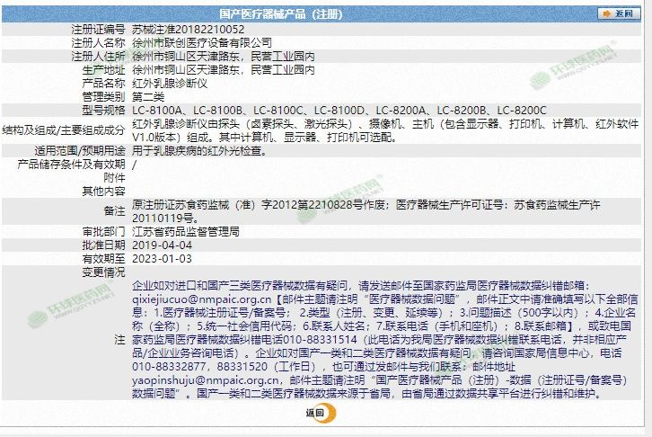 | 產(chǎn)品用途 | 【適用范圍】用于乳腺疾病的紅外光檢查 |