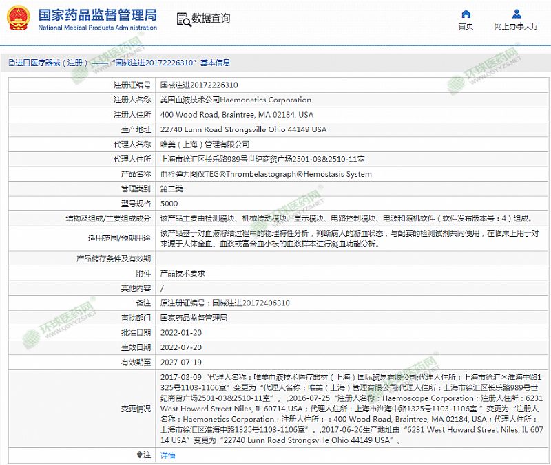 | 補(bǔ)充說(shuō)明 | TEG®能在短時(shí)間幫助醫(yī)生判斷病人的凝血狀態(tài),直接給出診斷,讓醫(yī)生快速做出準(zhǔn)確判斷,迅速做出治療方案。通過(guò)TEG®再次檢測(cè),可立即得知輸血、抗凝、抗血小板治療方案是否合理。方便醫(yī)師的工作,不需要再看復(fù)雜的報(bào)告,對(duì)病人的凝血狀態(tài)胸有成竹,提高了醫(yī)院醫(yī)療技術(shù)和聲譽(yù)。 TEG的用途: 1)監(jiān)測(cè)肝素化情況,尤其是低分子肝素; 2)能把病人圍手術(shù)期的真正凝血功能提供醫(yī)院參考; 3)其對(duì)血小板的特異功能評(píng)價(jià),能對(duì)轉(zhuǎn)機(jī)時(shí)間長(zhǎng)的受術(shù)者,準(zhǔn)確反應(yīng)其血小板功能; 4)評(píng)估液體和血制品的使用對(duì)血凝影響,探討出更合理的使用方案,減少不必要的費(fèi)用; 5)準(zhǔn)確判斷患者的術(shù)后出血是手術(shù)造成還是凝血異常所致; 6)其對(duì)高凝狀態(tài)的診斷,判斷患者出現(xiàn)缺血時(shí)間的風(fēng)險(xiǎn),是目前其它檢測(cè)方法所不能代替的; 7)評(píng)估抗血小板藥物的效果,指導(dǎo)個(gè)性化抗血小板治療; 8)特有的溫度調(diào)節(jié)功能可將檢測(cè)溫度調(diào)節(jié)到病人的實(shí)際環(huán)境溫度,更正確更科學(xué)地判斷病人凝血狀況。 TEG在麻醉科的用途: 1)判斷患者出血原因,鑒別是由于凝血系統(tǒng)異常引起,還是外科原因引起; 2)準(zhǔn)確診斷患者的凝血異常的類型,鑒別凝血因子缺乏、血小板功能不良、纖溶亢進(jìn)等; 3)指導(dǎo)成分血使用,明確成分血給予的時(shí)間、種類、劑量; 4)判斷患者高凝狀態(tài),指導(dǎo)抗凝治療,預(yù)防術(shù)中血栓; 5)鑒別原發(fā)纖溶亢進(jìn)和繼發(fā)纖溶亢進(jìn); 6)檢測(cè)和評(píng)估成分血和/或與凝血相關(guān)藥物的治療效果; 7)監(jiān)測(cè)手術(shù)中其他治療對(duì)凝血系統(tǒng)的影響,如輸液、藥物使用等; 8)判斷肝素的效果和魚(yú)精蛋白中和肝素的效果。 有效期至 2027-07-19 |