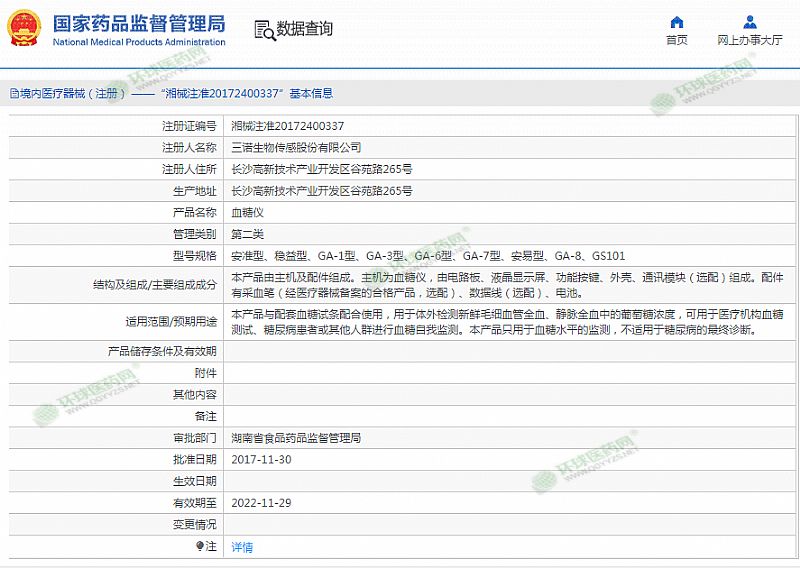生產(chǎn)企業(yè): 三諾生物傳感股份有限公司