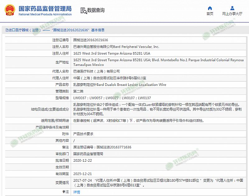 生產(chǎn)企業(yè): 巴德外周血管股份有限公司Bard Peripheral Vascular, Inc.