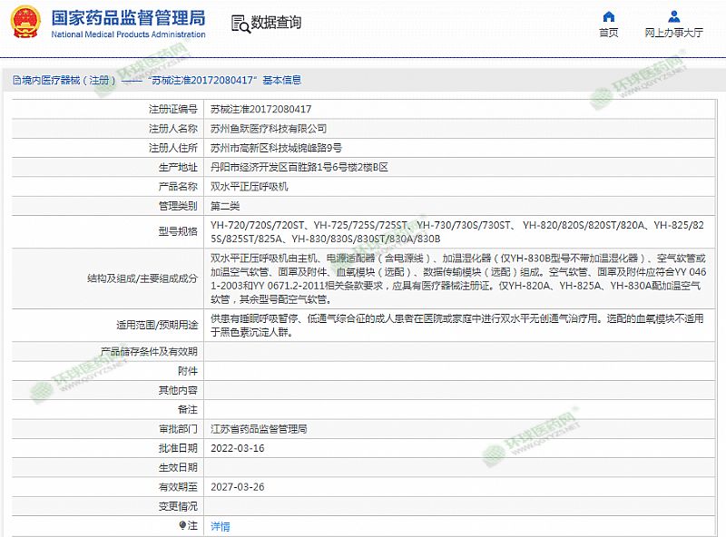 | 產(chǎn)品用途 | 適用范圍/預(yù)期用途:供患有睡眠呼吸暫停、低通氣綜合征的成人患者在醫(yī)院或家庭中進(jìn)行雙水平無(wú)創(chuàng)通氣治療用。選配的血氧模塊不適用于黑色素沉淀人群。 有效期至 2027-03-26 |