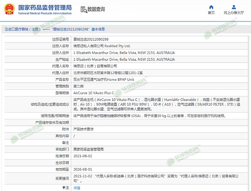 生產(chǎn)企業(yè): 瑞思邁私人有限公司 ResMed Pty Ltd.