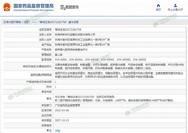 生產(chǎn)企業(yè): 珠海市新依科藍氧科技股份有限公司