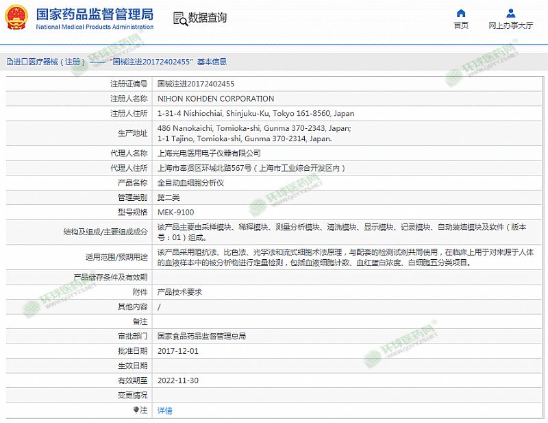 | 產(chǎn)品用途 | 該產(chǎn)品采用阻抗法、比色法、光學(xué)法和流式細(xì)胞術(shù)法原理,與配套的檢測試劑共同使用,在臨床上用于對來源于人體的血液樣本中的被分析物進(jìn)行定量檢測,包括血液細(xì)胞計(jì)數(shù)、血紅蛋白濃度、白細(xì)胞五分類項(xiàng)目。 有效期至 2022-11-30 |