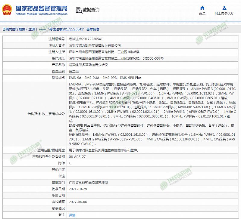 | 產(chǎn)品用途 | 用于臨床對腦血管及外周血管疾病的診斷和監(jiān)護。 有效期至 2027-04-06 |