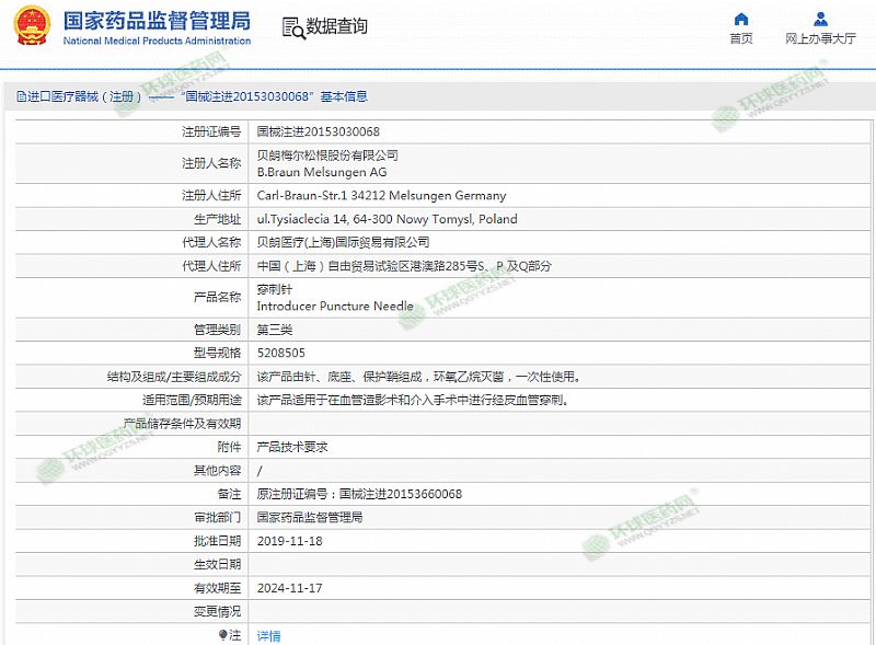 | 產(chǎn)品用途 | 該產(chǎn)品適用于在血管造影術(shù)和介入手術(shù)中進(jìn)行經(jīng)皮血管穿刺。 有效期至 2024-11-17 |