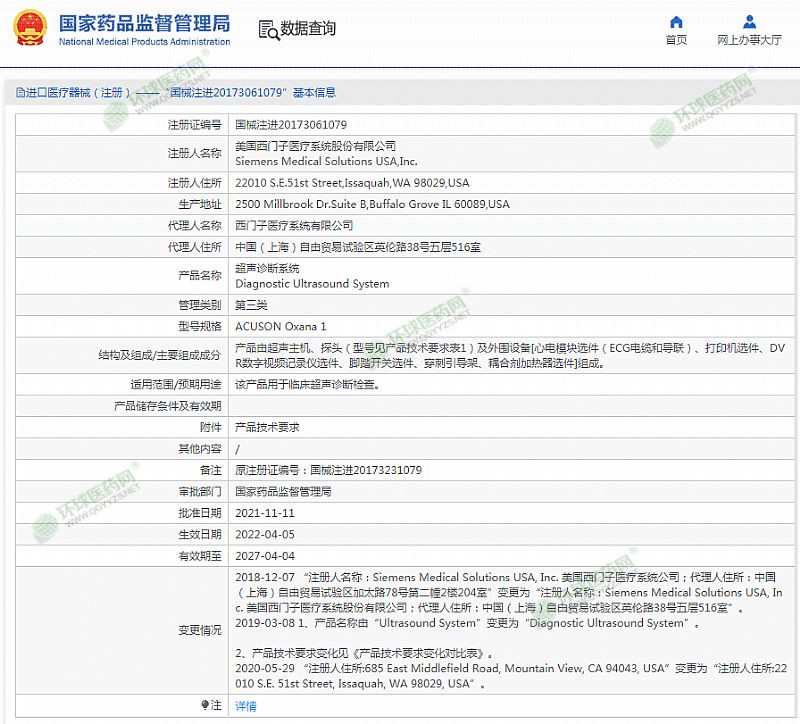 生產(chǎn)企業(yè): 美國西門子醫(yī)療系統(tǒng)股份有限公司