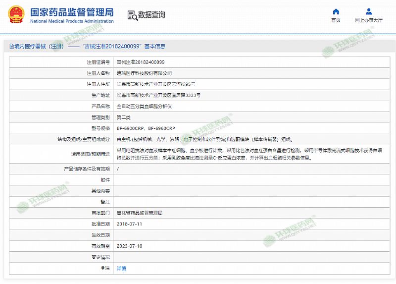 生產(chǎn)企業(yè): 迪瑞醫(yī)療科技股份有限公司