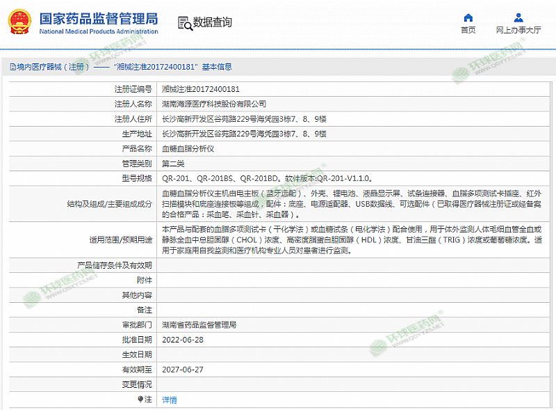 | 補(bǔ)充說明 | 審批部門:湖南省藥品監(jiān)督管理局 |