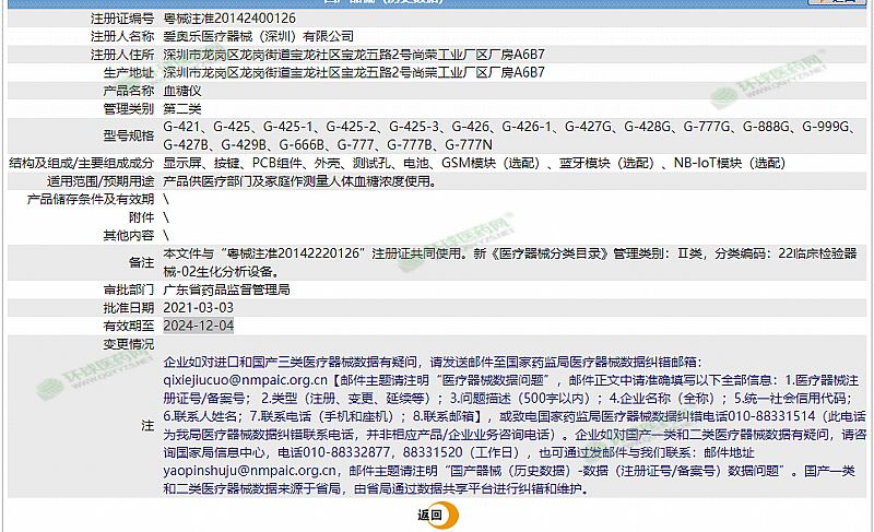 | 補(bǔ)充說明 | G-427B血糖儀 審批部門:廣東省藥品監(jiān)督管理局 |