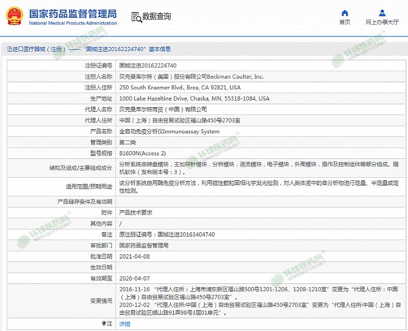 生產(chǎn)企業(yè): 貝克曼庫(kù)爾特(美國(guó))股份有限公司Beckman Coulter, Inc.