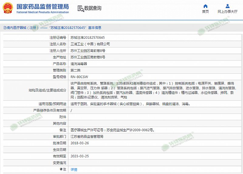 | 產(chǎn)品用途 | 適用于醫(yī)院、實驗室的手術(shù)器械(實心或管腔類)、麻醉器械、碗盤的清潔、消毒。 有效期至 2023-03-25 |