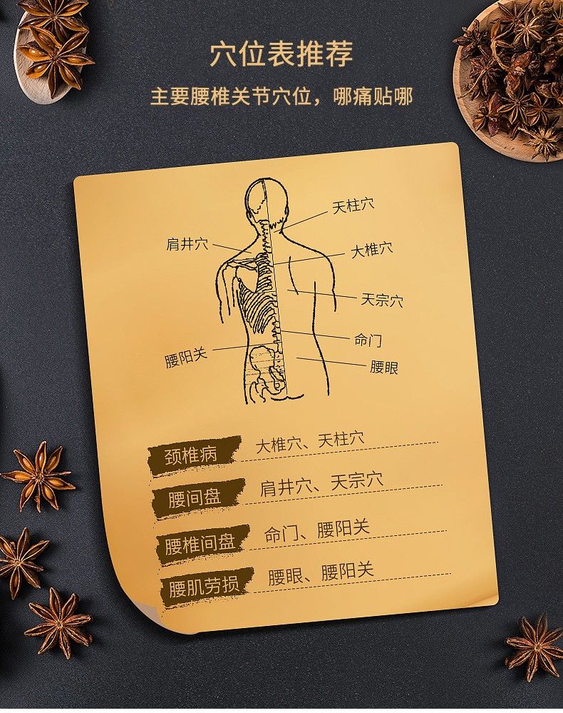 | 產(chǎn)品賣點 | 用于頸、肩、腰、腿、關(guān)節(jié)、急性扭挫傷、骨折等;引起的閉合性軟組織疼痛時,可根據(jù)不同的癥狀和疼痛部位,依據(jù)貼敷療法進行貼敷,或根據(jù)不同的穴位進行穴位貼敷。 |