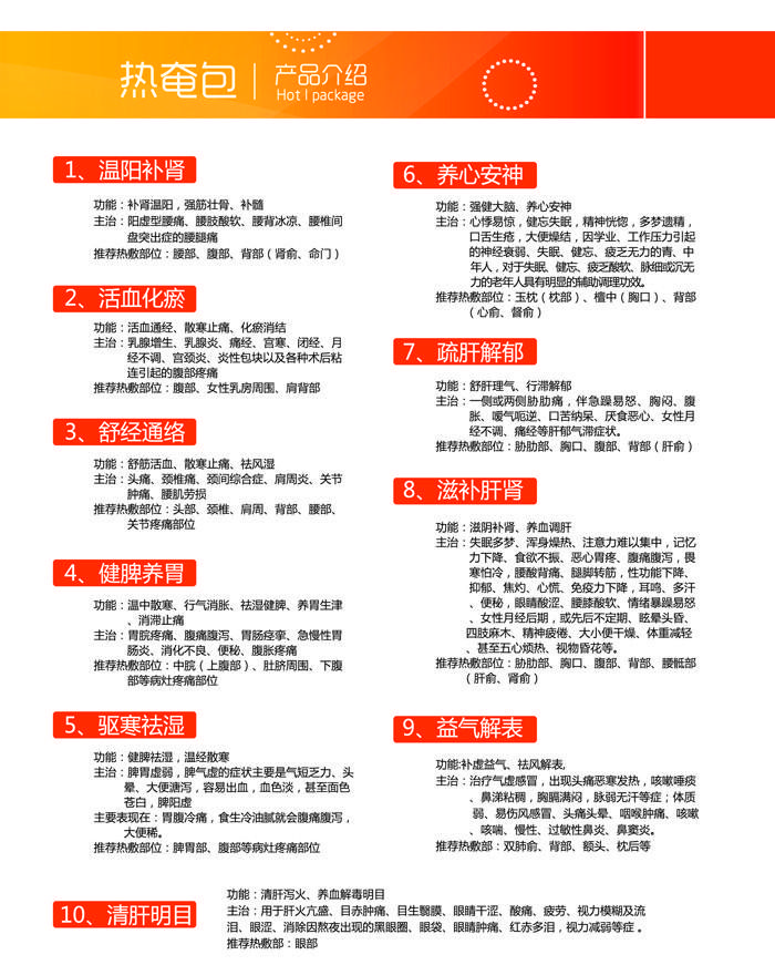 | 功能主治 | 熱奄包適用于肩周炎、腰肌勞損、頸椎病、腰椎間盤突出、風(fēng)濕性關(guān)節(jié)炎(非急性期)等的輔助治療。二類醫(yī)療器械文號(hào)熱奄包廠家招商代理,全國醫(yī)院、門診、藥店好操作,可走醫(yī)保收費(fèi)項(xiàng)目,中藥熱奄包療法是將加熱好的中藥藥包置于身體的患病部位或身體的某一特定位置(如穴位上)。 |