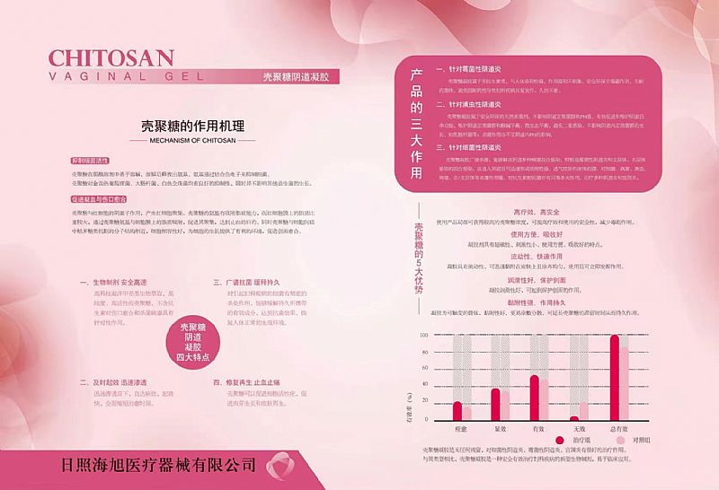 | 作用機理 | 產(chǎn)品由殼聚糖、卡波姆、甘油和純化水組成,配備輸 送器使用。輸送器采用醫(yī)用聚乙烯制成。殼聚糖陰道凝膠 應(yīng)為無色至淺黃色凝膠狀、無雜質(zhì);凝膠的輸送器除去蓋 帽,導(dǎo)管外表面應(yīng)光滑,無鋒棱毛刺。粘度應(yīng)不小于1000mPa •s;酸堿度應(yīng)為3.8~5.8;重金屬總含量應(yīng)不大于20μg/g; 產(chǎn)品應(yīng)無菌 |