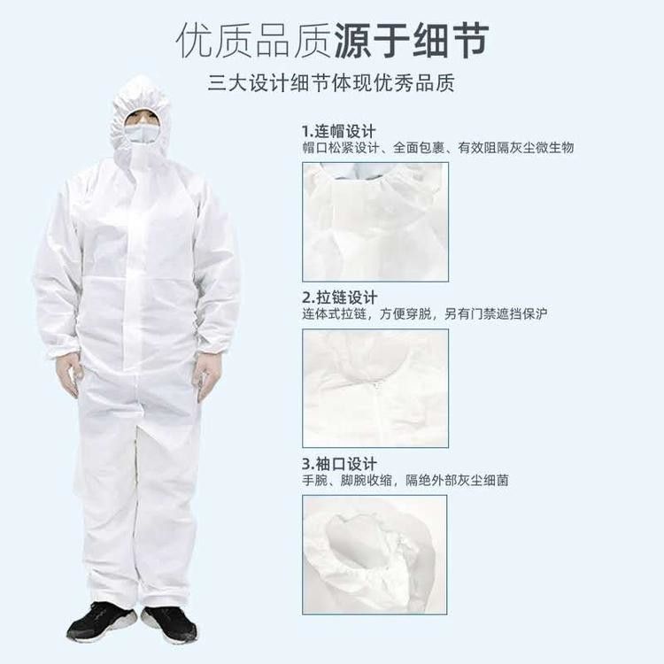 | 主要成分 | 1、連體式防護服,有帽子、上衣和褲子。 2、門襟拉鏈密封,帽檐、袖口、腳口、腰間等用松緊調(diào)節(jié)大小。 3、防水無紡布除了衣服邊緣的針眼,其余針眼用膠條完全密封,I襟用拉鏈 |