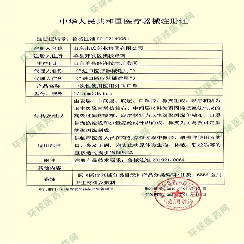 批準文號: 魯械注準20192140064 【驗證真?zhèn)?/a>】