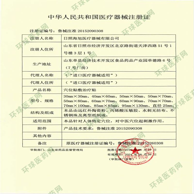 | 補充說明 | 適用于 乳腺貼針對人體特定穴位,對中醫(yī)穴位起刺激作用。 規(guī) 格 8.5*8.5cm*1貼/袋*3袋/盒 主要成分 乳腺貼由遠紅外陶瓷粉、丙烯酸壓敏膠、水刺無紡布、不銹鋼珠及離型紙制成。乳腺貼的壓敏膠布剝離強度不小于1.0N/cm,持粘性應不大于2.5mm。遠紅外發(fā)射波長范圍8μm-15μm,法相比輻射率≥75%。 使用方法 清潔相應穴位,打開包裝,取出乳腺貼,將貼劑的隔離膜撕去,以鋼珠對準相應穴位敏感點貼壓,1片/穴、天。 補充說明 【主要結構】乳腺貼由遠紅外陶瓷粉、丙烯酸壓敏膠、水刺無紡布、不銹鋼珠及離型紙制成。乳腺貼的壓敏膠布剝離強度不小于1.0N/cm,持粘性應不大于2.5mm。遠紅外發(fā)射波長范圍8μm-15μm,法相比輻射率≥75*。 【禁忌癥】孕婦、皮膚潰爛處禁用。 【慎用】糖尿病、高熱患者。 【注意事項】1.本品一次性使用,使用后銷毀;2.敷貼后如有過敏等不適,應停止敷貼。 【貯存】本產品應貯存在相對濕度不超過80度,無腐爛性氣體,陰涼、干燥、通風良好、干凈的環(huán)境內。 【技術要求】魯械注準20152260318 【生產許可】魯食藥監(jiān)械生產許20140114號 【生產單位】日照海旭醫(yī)療器械有限公司 【生產地址】山東單縣經濟技術開發(fā)區(qū) 經銷企業(yè) 日照海旭醫(yī)療器械有限公司 其它說明 歡迎來電咨詢18953030742 對代理商的要求: (1)有成熟完善銷售網絡; (2)有較強的責任心和信心; (3)具有一定的經濟實力和良好的商業(yè)信譽; (4)有豐富的市場操作經驗,較強的市場開發(fā)能力; 可提供的支持: (1)嚴格的市場保護,確保運作者權益; (2)提供合理的運作空間,確保投入與收益成正比; (3)企業(yè)會持續(xù)穩(wěn)定給予代理商做**服務工作; (4)巨大的**空間; (5)良好的售后服務; (6)提供合法的經營手續(xù); (7)實行區(qū)域**代理; |