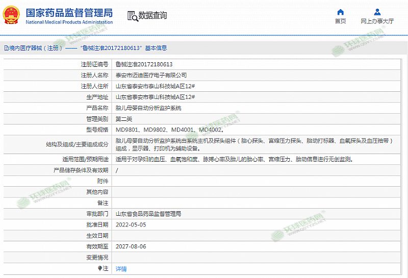生產(chǎn)企業(yè): 泰安市邁迪醫(yī)療電子有限公司