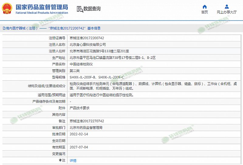 | 補(bǔ)充說(shuō)明 | ***、產(chǎn)品介紹 中醫(yī)經(jīng)絡(luò)檢測(cè)儀是以中醫(yī)經(jīng)絡(luò)、現(xiàn)代全息理論為基礎(chǔ),通過(guò)采集人體十二經(jīng)絡(luò)位于手部反射區(qū)的電生理信號(hào),應(yīng)用計(jì)算機(jī)模擬中醫(yī)臨床診斷分析,以數(shù)字、圖形、中醫(yī)辨證等方式呈現(xiàn)檢測(cè)報(bào)告,其包含四大模塊(經(jīng)絡(luò)辨證、臟腑辨證、體質(zhì)辨識(shí)、情志評(píng)估),為臨床診療提供輔助參考依據(jù)。 二、產(chǎn)品功能 經(jīng)絡(luò)數(shù)據(jù)自動(dòng)采集 經(jīng)絡(luò)辨證與疾病風(fēng)險(xiǎn)預(yù)警 臟腑辨證與氣血狀態(tài)分析 中醫(yī)體質(zhì)辨識(shí)與調(diào)理建議 情志狀態(tài)評(píng)估分析 療效動(dòng)態(tài)監(jiān)測(cè)評(píng)估 多維數(shù)據(jù)管理與統(tǒng)計(jì)分析 數(shù)據(jù)遠(yuǎn)程傳輸及云存儲(chǔ) 醫(yī)院信息系統(tǒng)數(shù)據(jù)交互 檢測(cè)過(guò)程智能語(yǔ)音提示 三、產(chǎn)品特點(diǎn) 快速:80*自動(dòng)完成人體十二經(jīng)絡(luò)探查 準(zhǔn)確:臨床驗(yàn)證吻合率高 智能:掌型自動(dòng)檢測(cè),無(wú)需人工干預(yù) 標(biāo)準(zhǔn):60 個(gè)中醫(yī)辨證常見(jiàn)證候標(biāo)準(zhǔn)運(yùn)算模型 **:五維度狀態(tài)分析,整體評(píng)估健康狀態(tài) 拓展:可滿(mǎn)足多協(xié)議醫(yī)院信息系統(tǒng)數(shù)據(jù)交互 有效期至 2027-07-04 |
