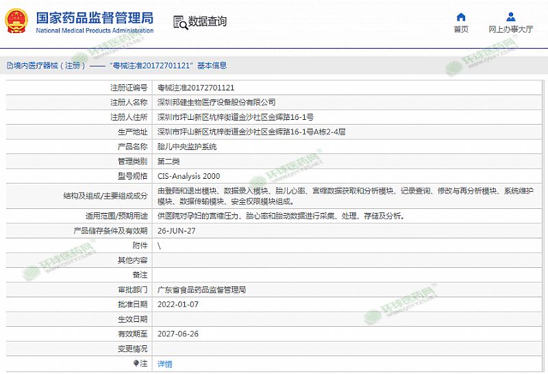 | 產(chǎn)品用途 | 供醫(yī)院對孕婦的宮縮壓力、胎心率和胎動數(shù)據(jù)進行采集、處理、存儲及分析。 有效期至 2027-06-26 |