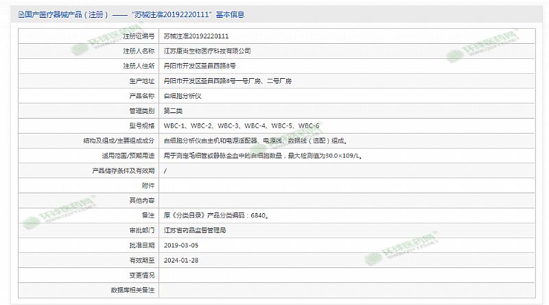批準(zhǔn)文號(hào): 蘇械注準(zhǔn)20192220111 【驗(yàn)證真?zhèn)?/a>】