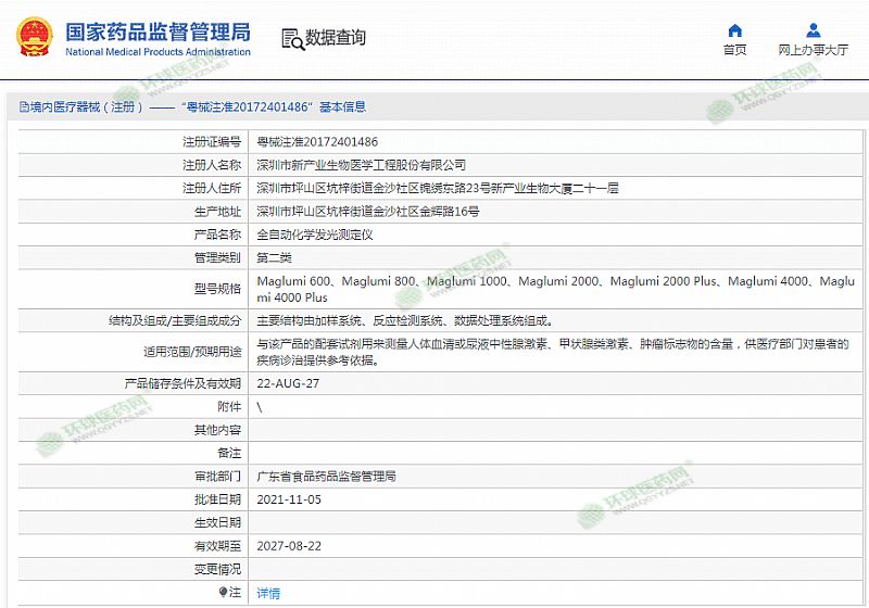 生產(chǎn)企業(yè): 深圳市新產(chǎn)業(yè)生物醫(yī)學(xué)工程股份有限公司