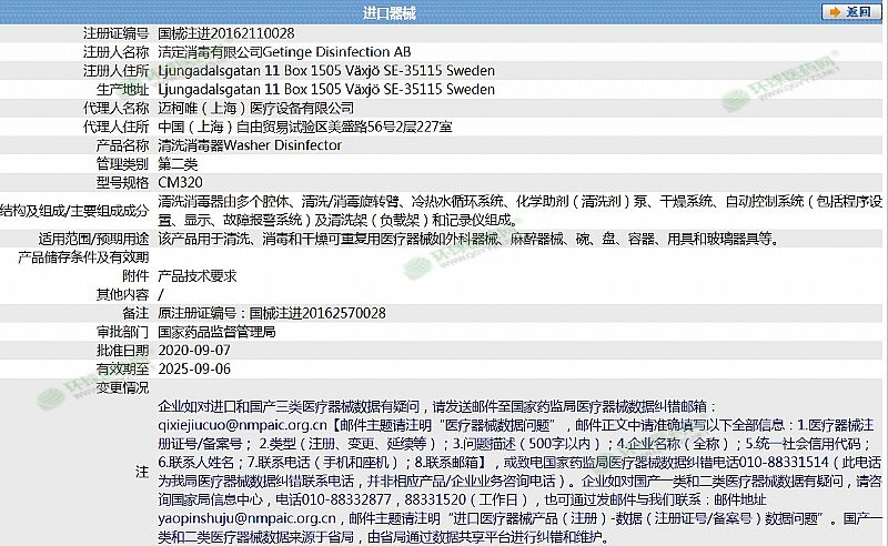 生產(chǎn)企業(yè): 潔定消毒有限公司Getinge Disinfection AB