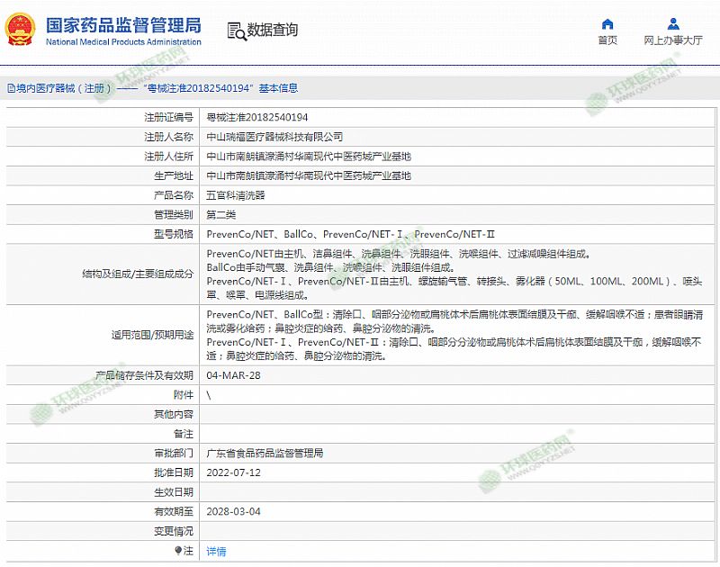 | 產(chǎn)品用途 | PrevenCo/NET、BallCo型:清除口、咽部分泌物或扁桃體術(shù)后扁桃體表面結(jié)膜及干痂、緩解咽喉不適;患者眼睛清洗或霧化給藥;鼻腔炎癥的給藥、鼻腔分泌物的清洗。PrevenCo/NET-Ⅰ、PrevenCo/NET-Ⅱ:清除口、咽部分分泌物或扁桃體術(shù)后扁桃體表面結(jié)膜及干痂,緩解咽喉不適;鼻腔炎癥的給藥、鼻腔分泌物的清洗。 有效期至 2028-03-04 |