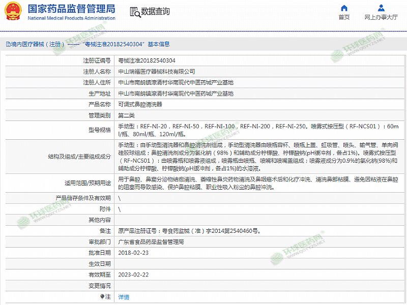 | 產(chǎn)品用途 | 用于鼻腔、鼻竇分泌物結(jié)痂清洗、萎縮性鼻炎藥物清洗及鼻咽癌術(shù)后和化療沖洗、清洗鼻部粘膜、避免因粘液在鼻腔的阻塞而導(dǎo)致感染、保護(hù)鼻腔粘膜、職業(yè)性吸入粉塵的鼻腔沖洗。 有效期至 2023-02-22 |