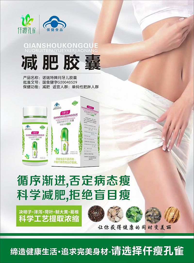 產(chǎn)品名稱: 仟瘦孔雀諾瑞特牌月牙兒膠囊