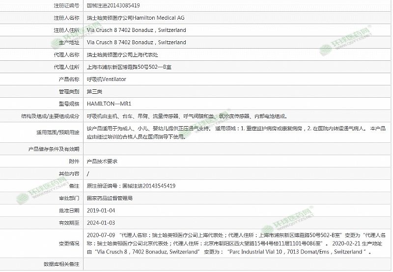生產(chǎn)企業(yè): 瑞士哈美頓醫(yī)療公司Hamilton Medical AG