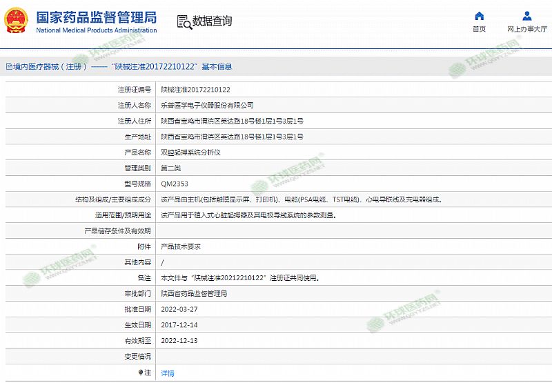 批準文號: 陜械注準20172210122 【驗證真?zhèn)?/a>】