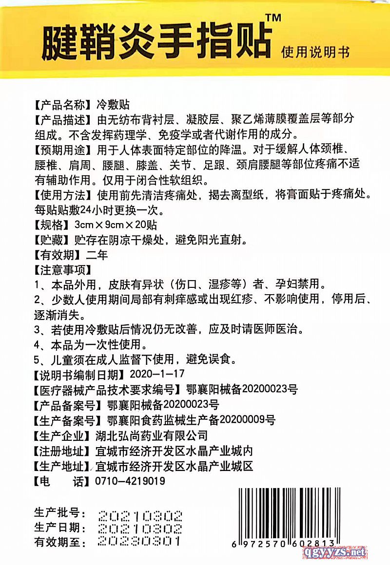 | 產(chǎn)品規(guī)格 | 20貼/盒 |