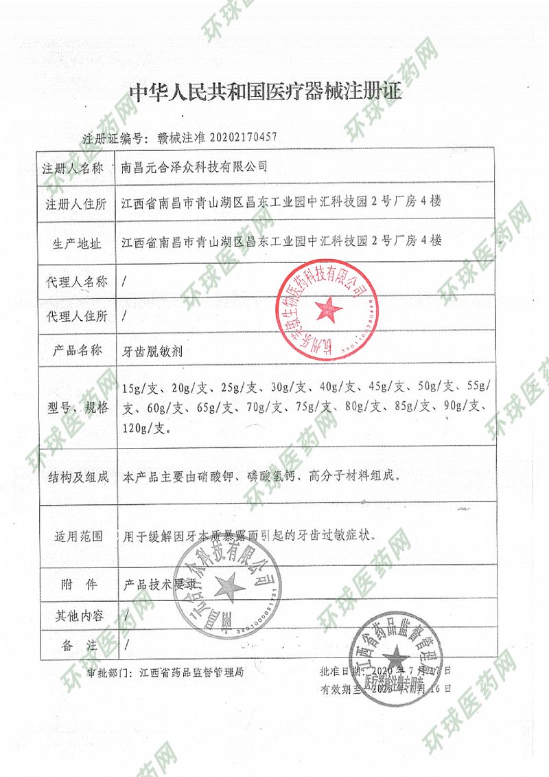 | 補充說明 | 【產(chǎn)品注冊證號】贛械注準(zhǔn)20202170457 【產(chǎn)品技術(shù)要求編號】贛械注準(zhǔn)20202170457 【生產(chǎn)許可證號】贛食藥監(jiān)械生產(chǎn)許20160095號 【注冊人/生產(chǎn)企業(yè)/售后服務(wù)單位】南昌元合澤眾科技有限公司 |