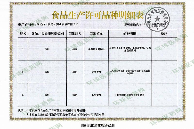 生產(chǎn)企業(yè): 綠優(yōu)品(福建)實業(yè)發(fā)展有限公司