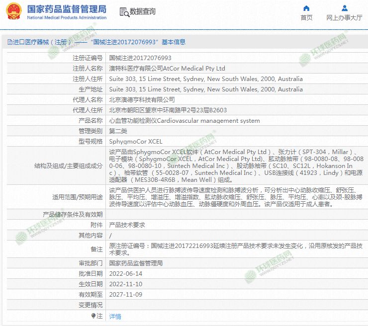 生產(chǎn)企業(yè): 澳特科醫(yī)療有限公司AtCor Medical Pty Ltd