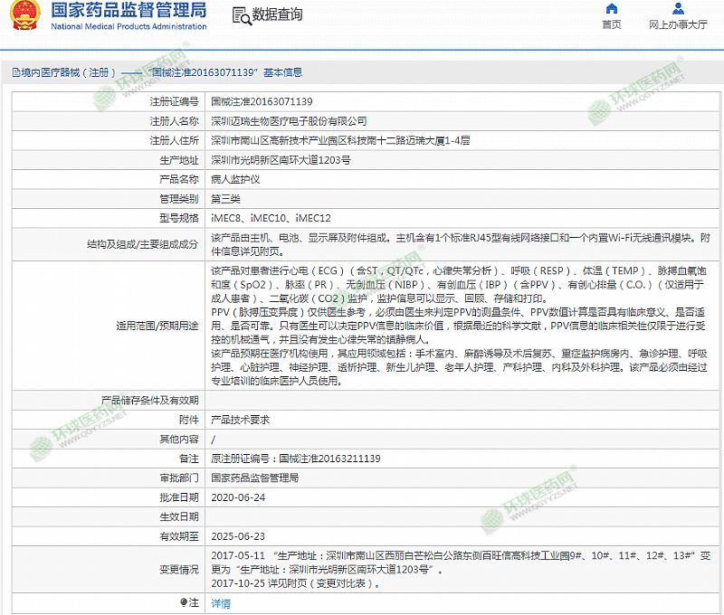 生產(chǎn)企業(yè): 深圳邁瑞生物醫(yī)療電子股份有限公司