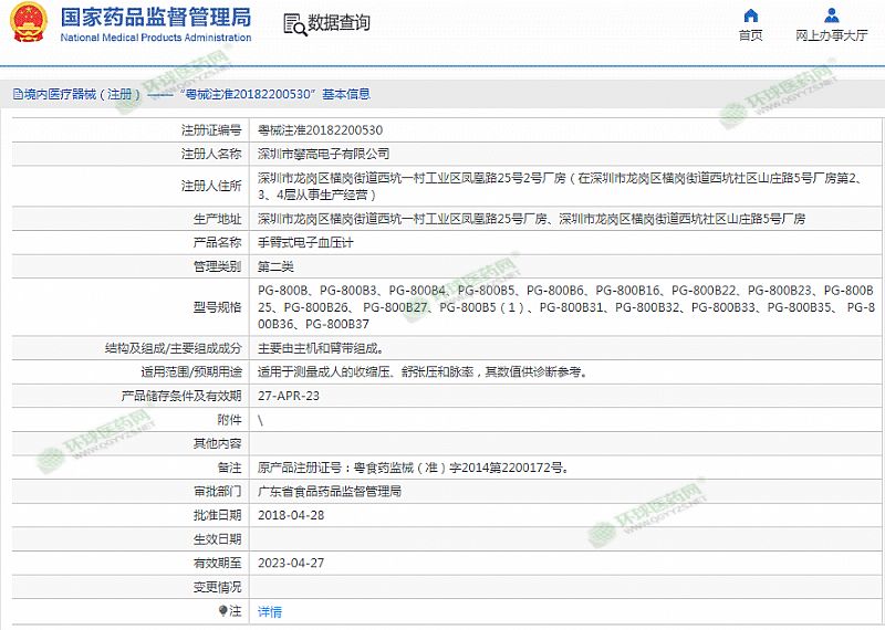 | 產(chǎn)品用途 | 適用范圍/預(yù)期用途 適用于測(cè)量成人的收縮壓、舒張壓和脈率,其數(shù)值供診斷參考! 有效期至 2023-04-27 |