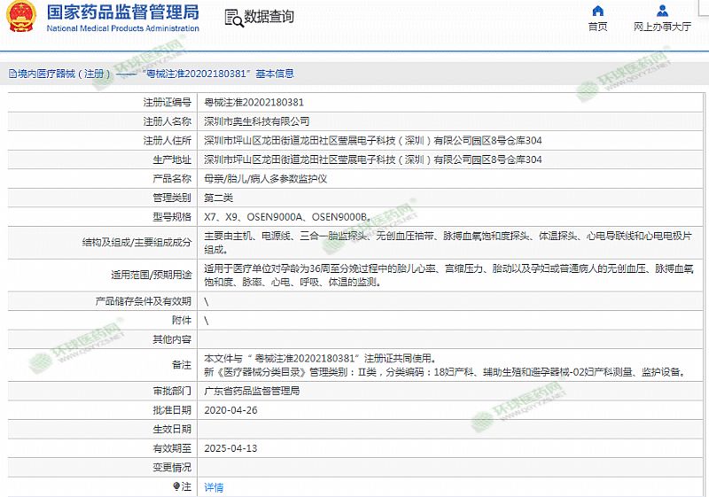 批準文號: 粵械注準20202180381 【驗證真?zhèn)?/a>】