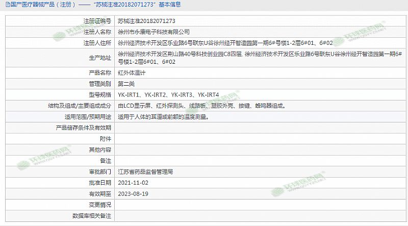批準(zhǔn)文號: 蘇械注準(zhǔn)20182071273 【驗(yàn)證真?zhèn)?/a>】