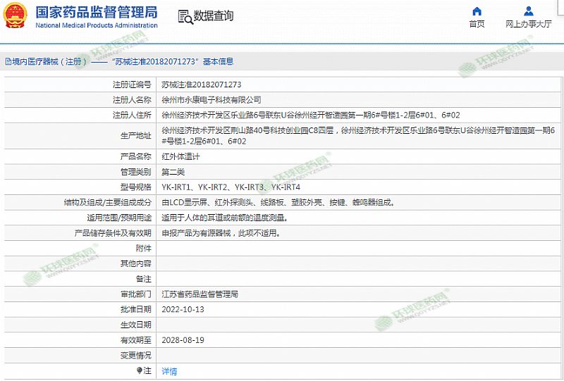 批準文號: 蘇械注準20182071273 【驗證真?zhèn)?/a>】