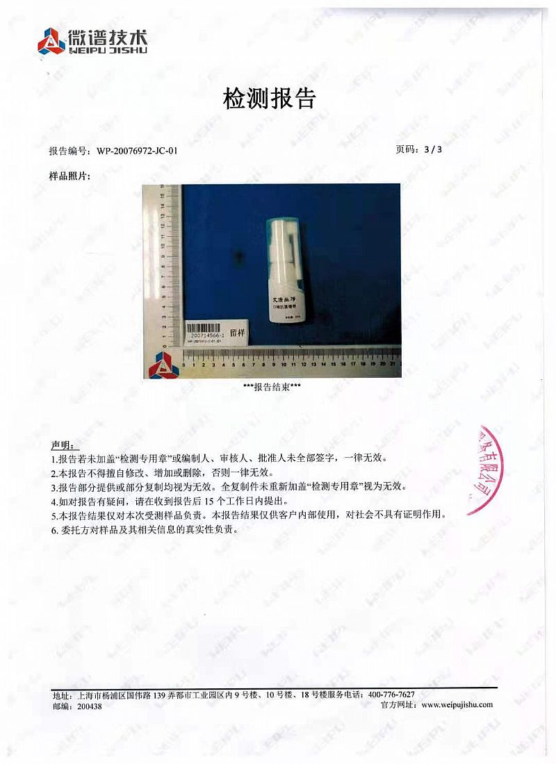 | 補(bǔ)充說明 | (適應(yīng)范圍)用于口腔粘膜,咽喉,牙齦,皮膚粘膜連接等部分的抗菌,用于清潔口咽,清新口氣等清潔護(hù)理 |