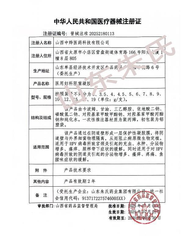 | 產(chǎn)品名稱 | 醫(yī)用婦科阻菌凝膠 |